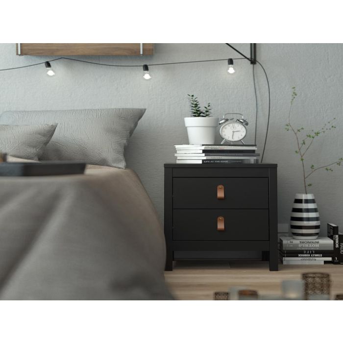 Barcelona 2 Drawers Bedside Table in Matt Black
