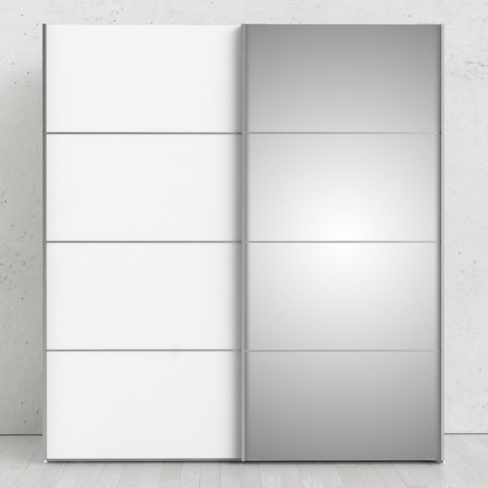 Verona 5 Shelf Sliding Wardrobe in White with 1 Mirrored Door