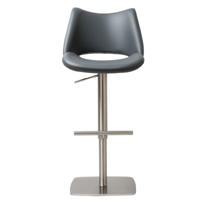 The Contour Barstool brings a sleek, contemporary touch to any kitchen or bar setting with its clean lines and refined materials. Featuring a durable stainless steel base, it offers a modern, polished look that complements a variety of interior styles. The seat and back are fully upholstered in slate grey synthetic leather, delivering a sophisticated, uniform appearance with a smooth texture that's both comfortable and easy to maintain. Designed for everyday functionality, the stool includes a gas lift mechanism for effortless height adjustment and a built-in footrest to enhance comfort. The Contour Barstool is where understated elegance meets practical design.