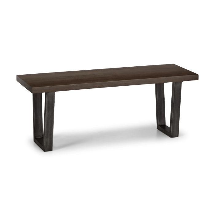 Made from solid oak, this bench offers a rustic dark oak finish emphasising the stunning natural wood grain. The Brooklyn Bench offers a vintage edge featuring industrial trapeze style metal legs. This spacious bench can seat up to 2 people, perfect for a wide range of modern decor. Part of the Julian Bowen Brooklyn Dining and Occasional Collection.