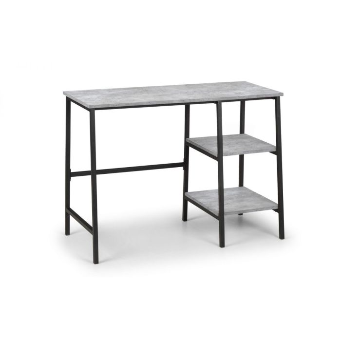 Simplistic in design with a contemporary style, the Staten Desk will add a stunning industrial look to any home office. Constructed from a black coated metal frame, complemented by a striking concrete effect tops, to create a very stylish, modern product. Part of the Julian Bowen Staten Dining and Occasional Collection.