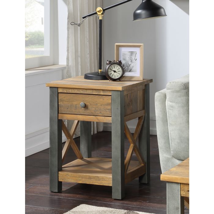 This one drawer lamp table/ bedside table features a drawer and an open shelf